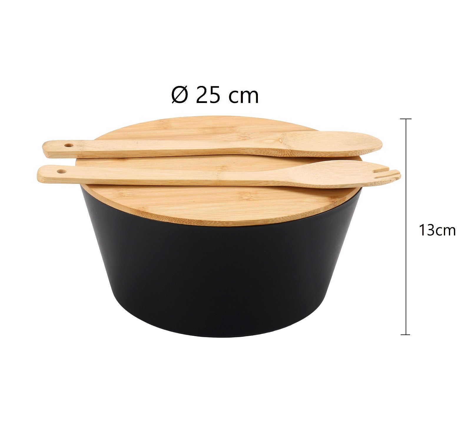 - Conținutul pachetului: 1 x Bol pentru salată, 1 x Furculiță pentru salată, 1 x Lingură pentru salată, 1 x Capac