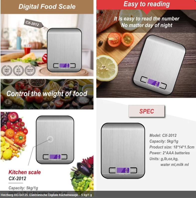 1 x Cântar digital de bucătărie Herzberg HG-04135