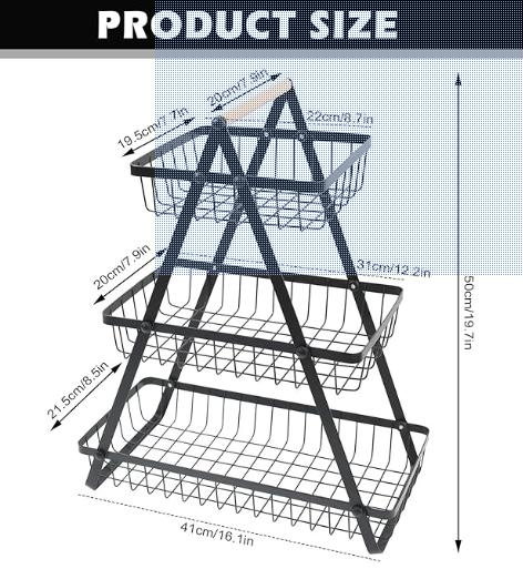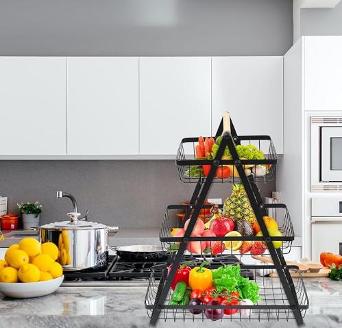 Organizează-ți spațiul eficient și cu stil cu acest coș etajat de la MaxEarn, format din 3 niveluri spațioase, ideale pentru depozitarea fructelor, legumelor, gustărilor, prosoapelor sau accesoriilor de birou.