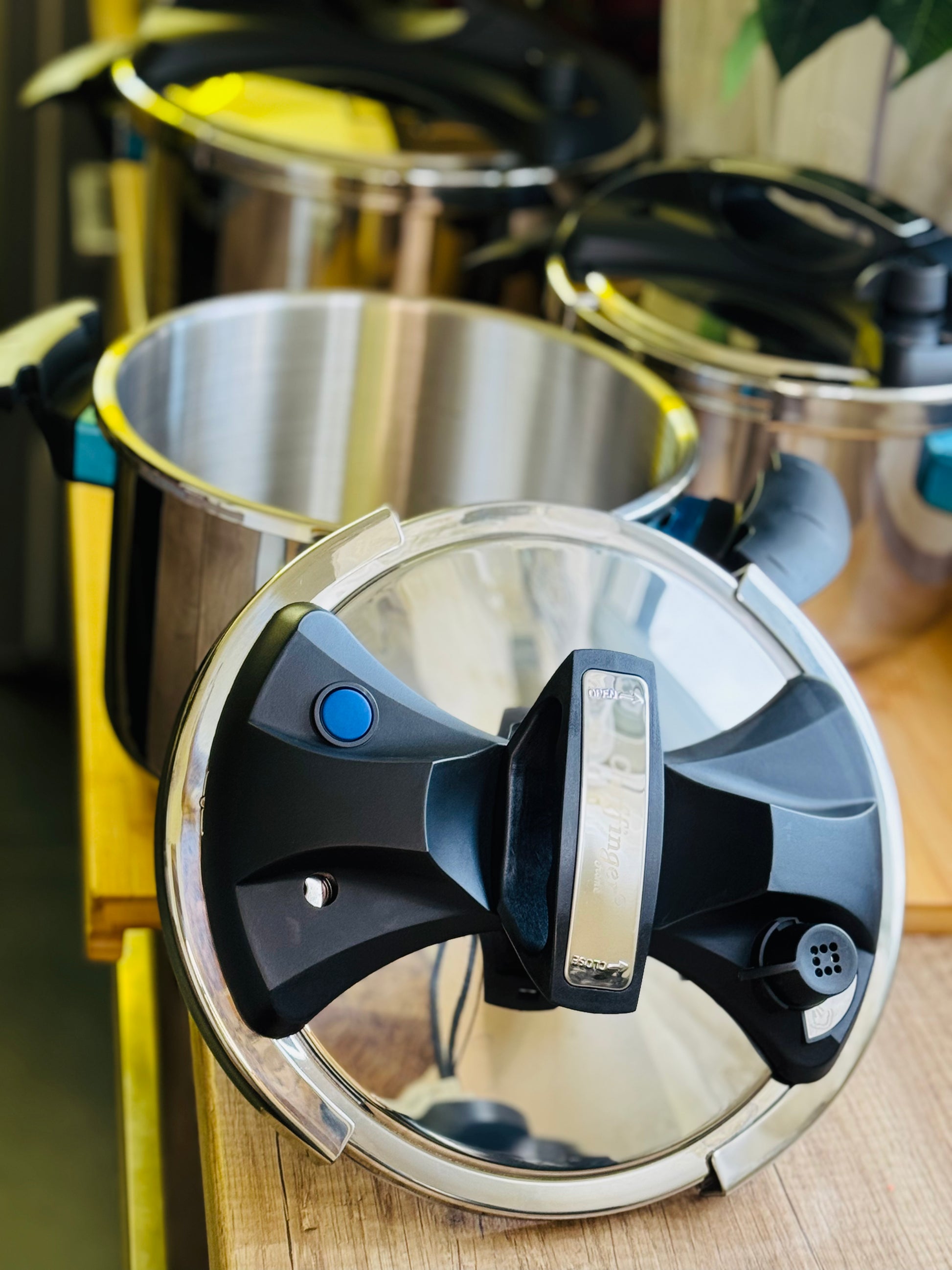 Construcția robustă din oțel inoxidabil, combinată cu un sistem inteligent de blocare de siguranță și mâneri confortabile, face ca gătitul să fie nu doar mai rapid, ci și mai sigur și mai plăcut. Ideală pentru cei care doresc să prepare mese mari fără a compromite calitatea sau comoditatea.
