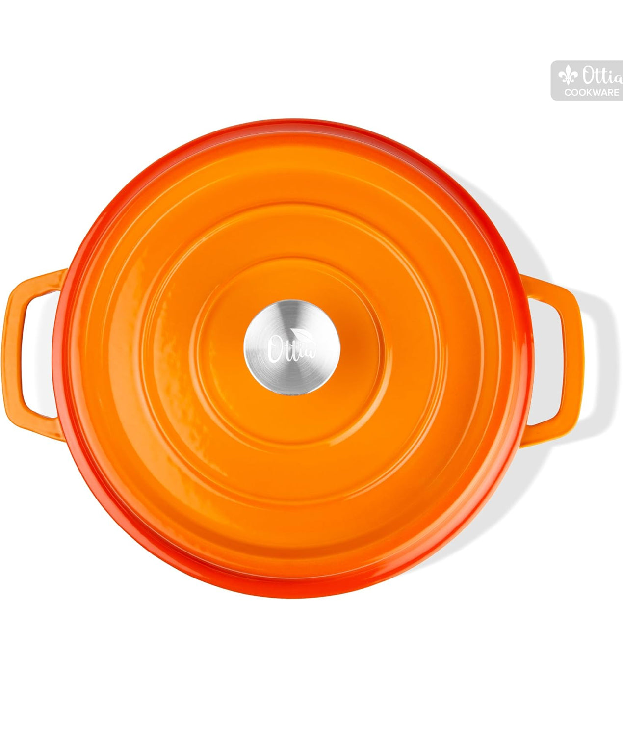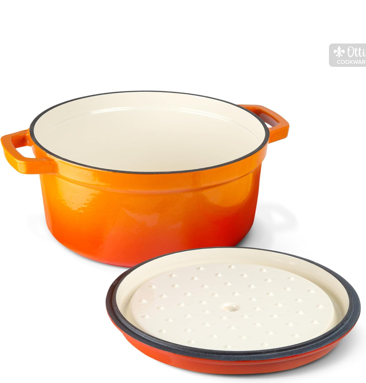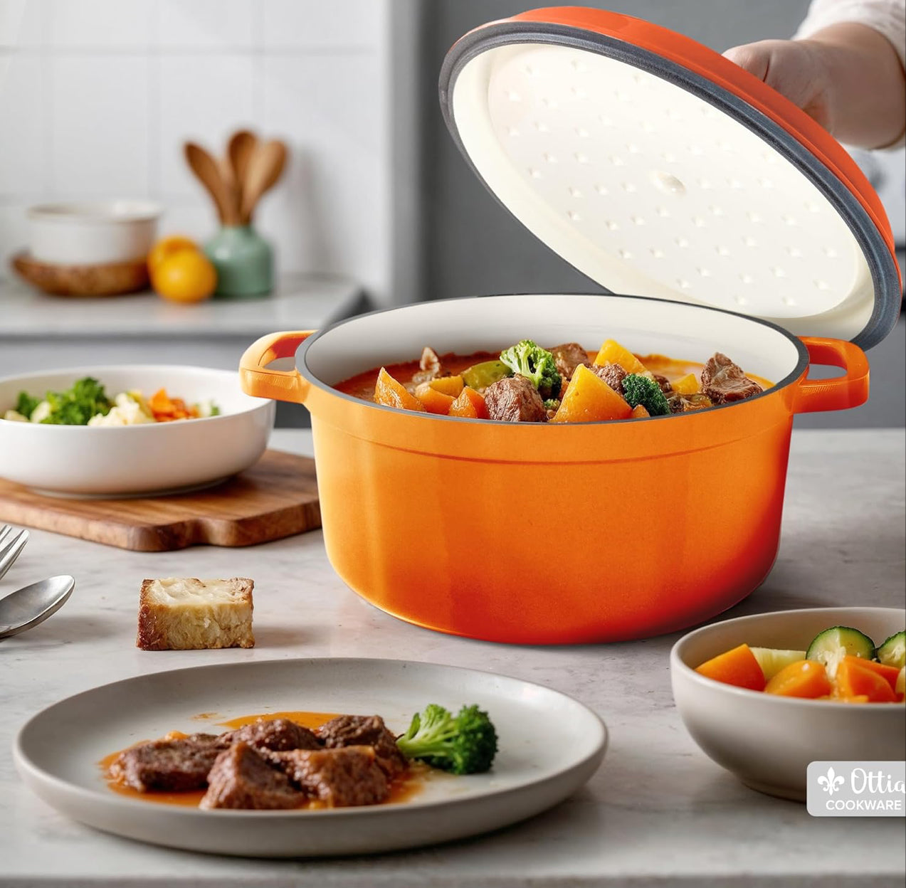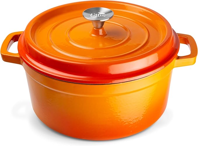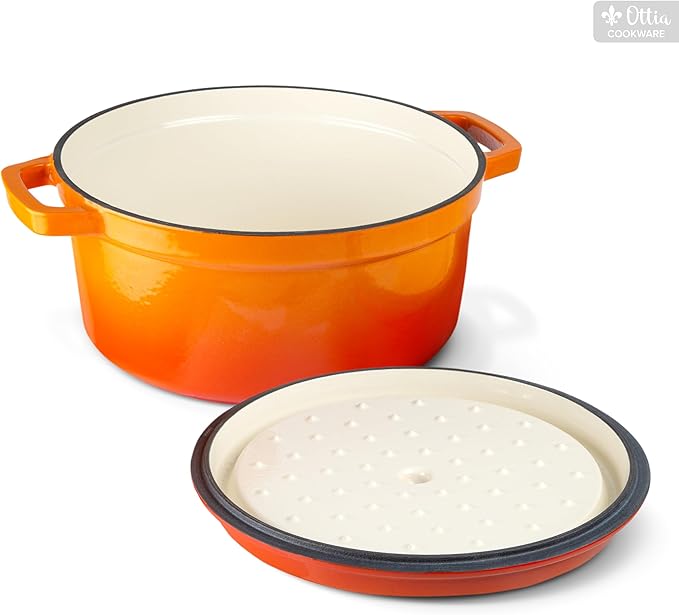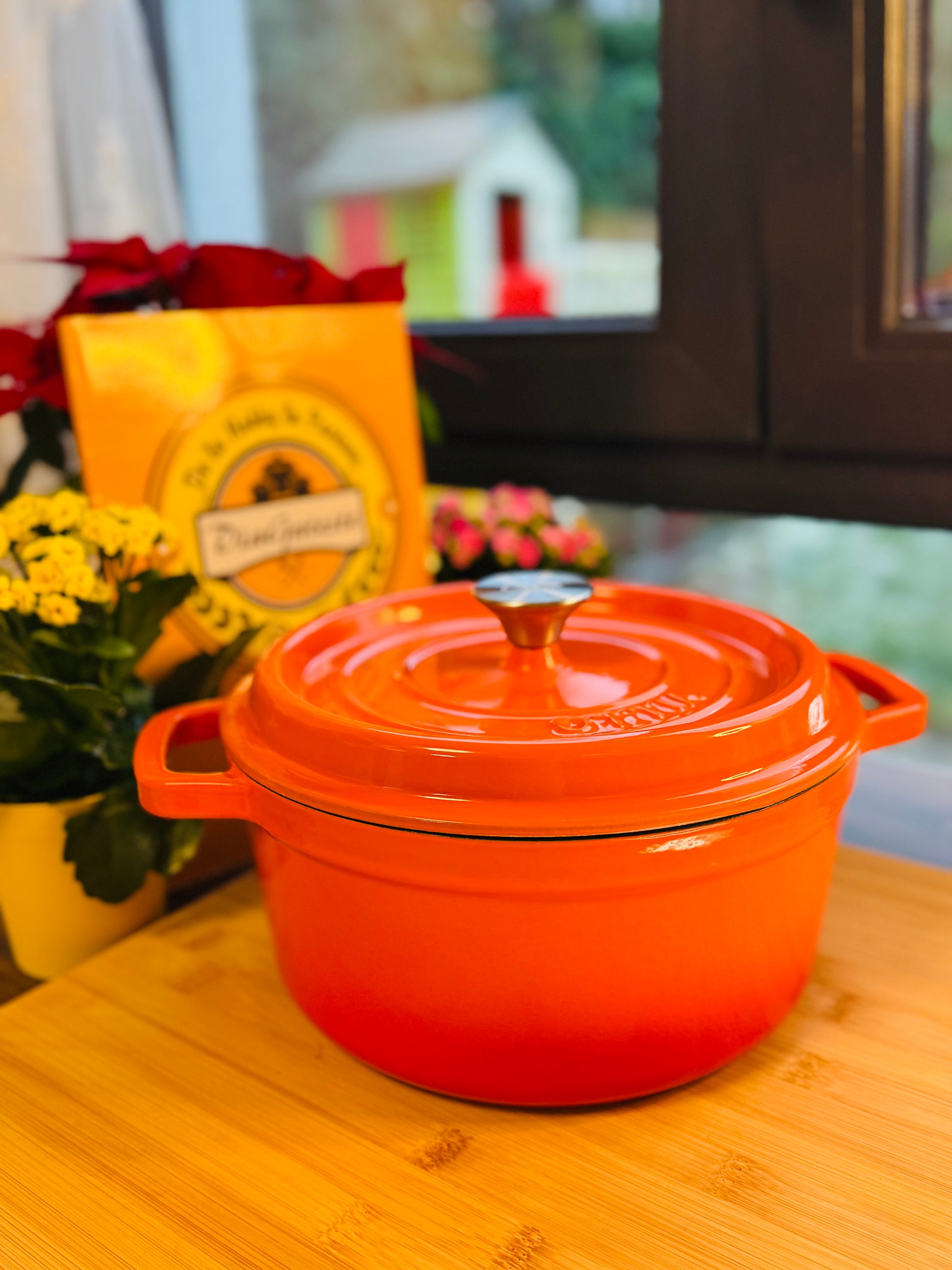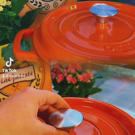 Funcții excelente: Oala noastră emailată din fontă este ușor de curățat, oferă o distribuție optimă a căldurii și o dezvoltare minunată a aromelor datorită noppelor de aromă de pe capac.