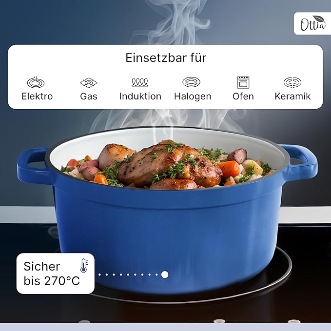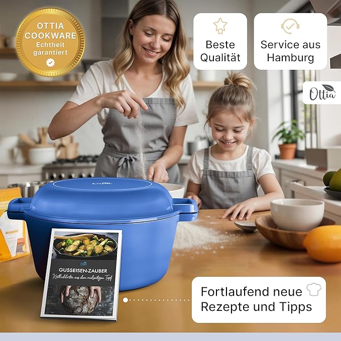Ottia este unică: Emailul aplicat manual în 3 straturi protejează oala din fontă și mâncarea ta. Comunitatea noastră de gătit oferă în permanență rețete noi pentru e-book-ul inclus.