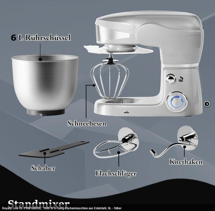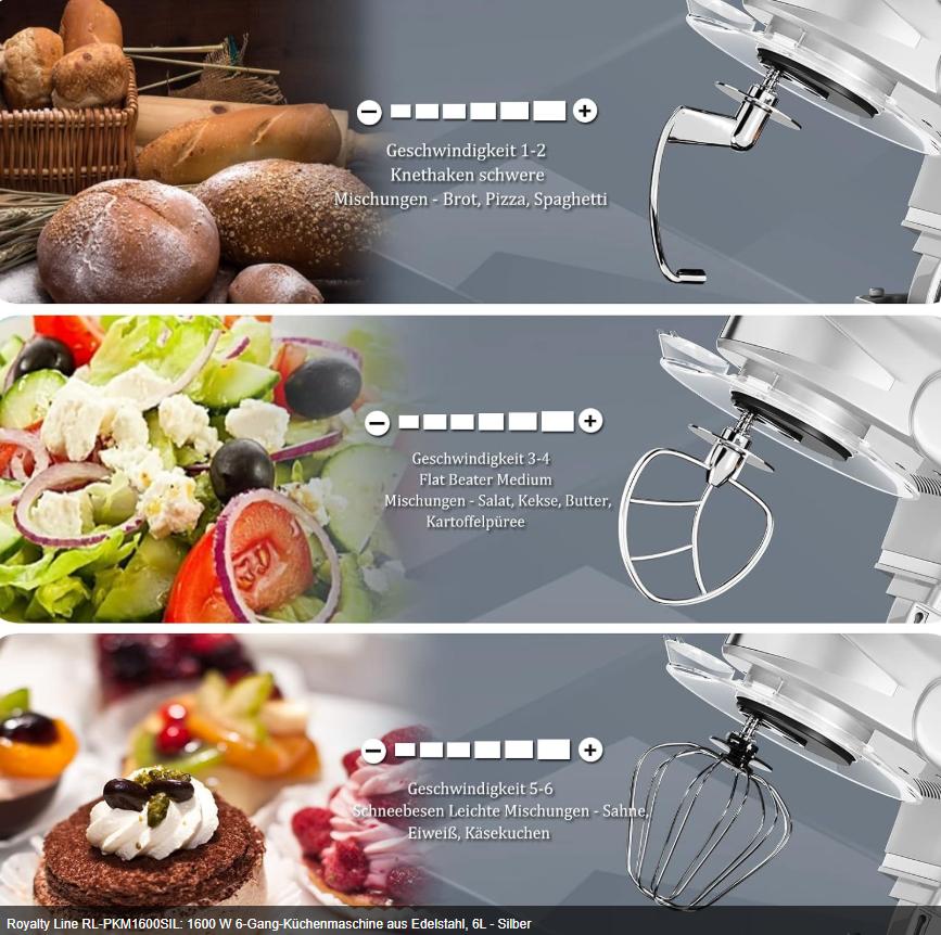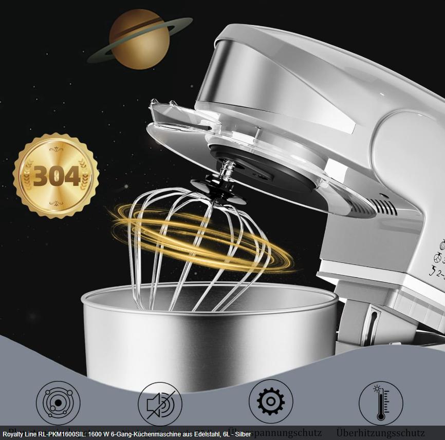 Royalty Line PKM-1600.6 este partenerul de încredere în orice bucătărie modernă, conceput pentru a transforma gătitul într-o activitate mai rapidă, mai eficientă și mai plăcută. Cu un motor puternic de 1600W și o carcasă robustă din metal turnat, acest mixer planetar face față cu ușurință oricărei provocări – de la aluaturi dense la compoziții fine.