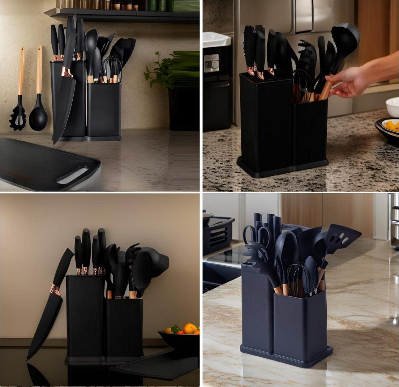 **Versatilitate:** Set complet cu 19 ustensile de bucătărie diferite.