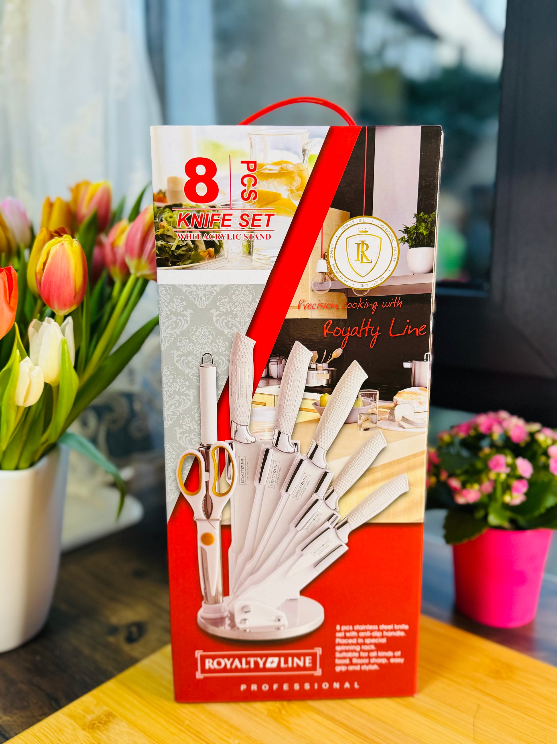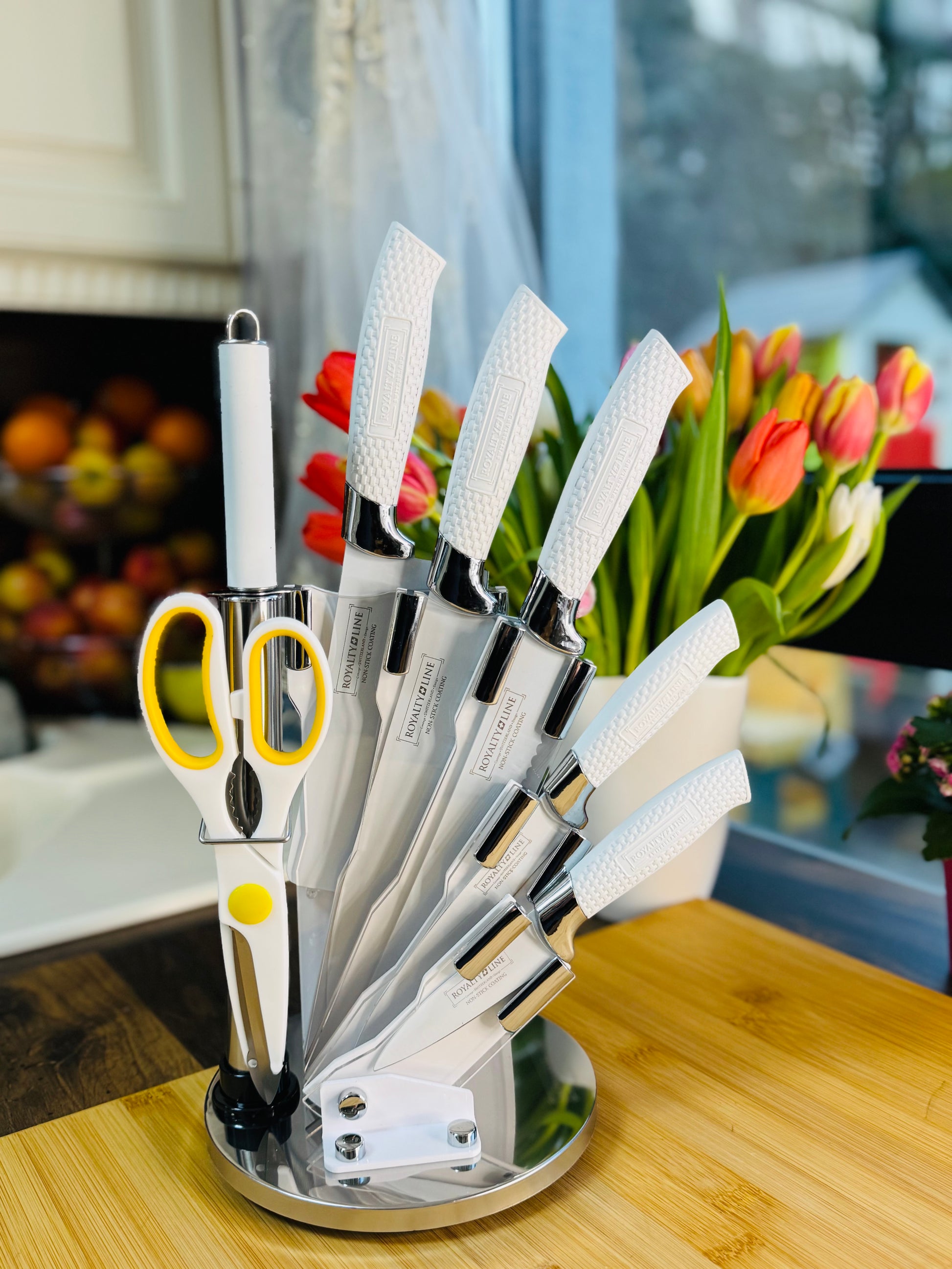Setul de cuțite 8 piese cu suport este alegerea ideală pentru orice bucătar, oferind atât funcționalitate, cât și un design elegant pentru bucătăria ta!