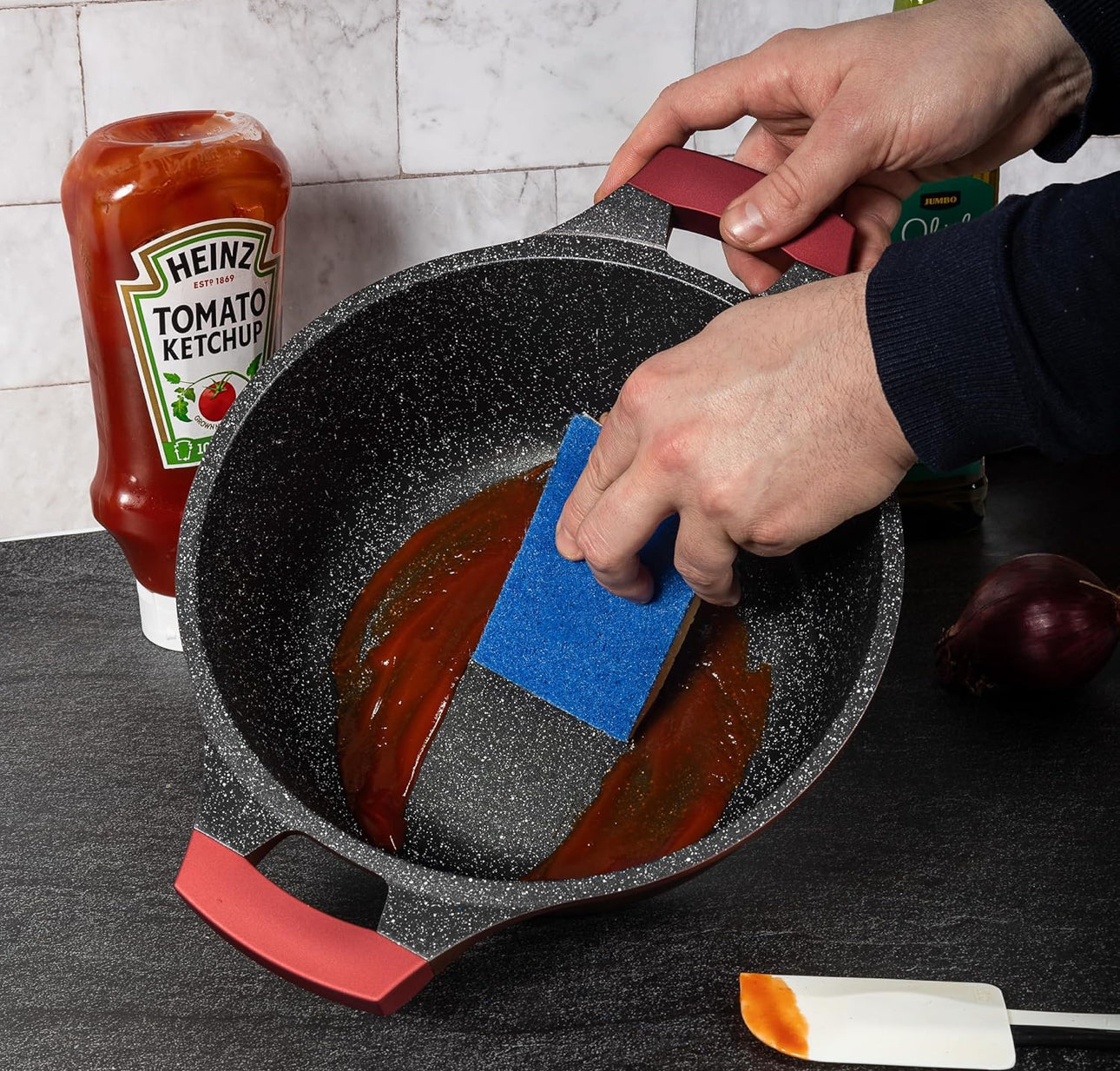 - **Mânere Soft-Touch:** Oferă un grip confortabil și sigur în timpul gătitului. 🤲