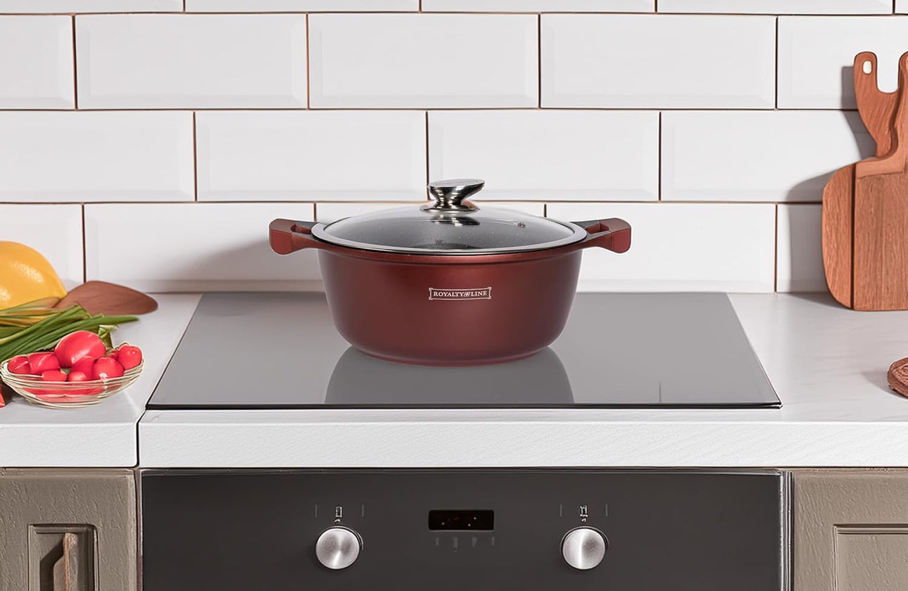 Setul este compatibil cu toate sursele de căldură și include mânere ergonomice din material Soft-Touch, care rămân reci în timpul gătitului. Indiferent dacă pregătiți o cină rapidă în timpul săptămânii sau organizați o reuniune festivă, setul de vase Burgundy vă permite să preparați mese delicioase și sănătoase cu ușurință și stil. 🍽️🎉