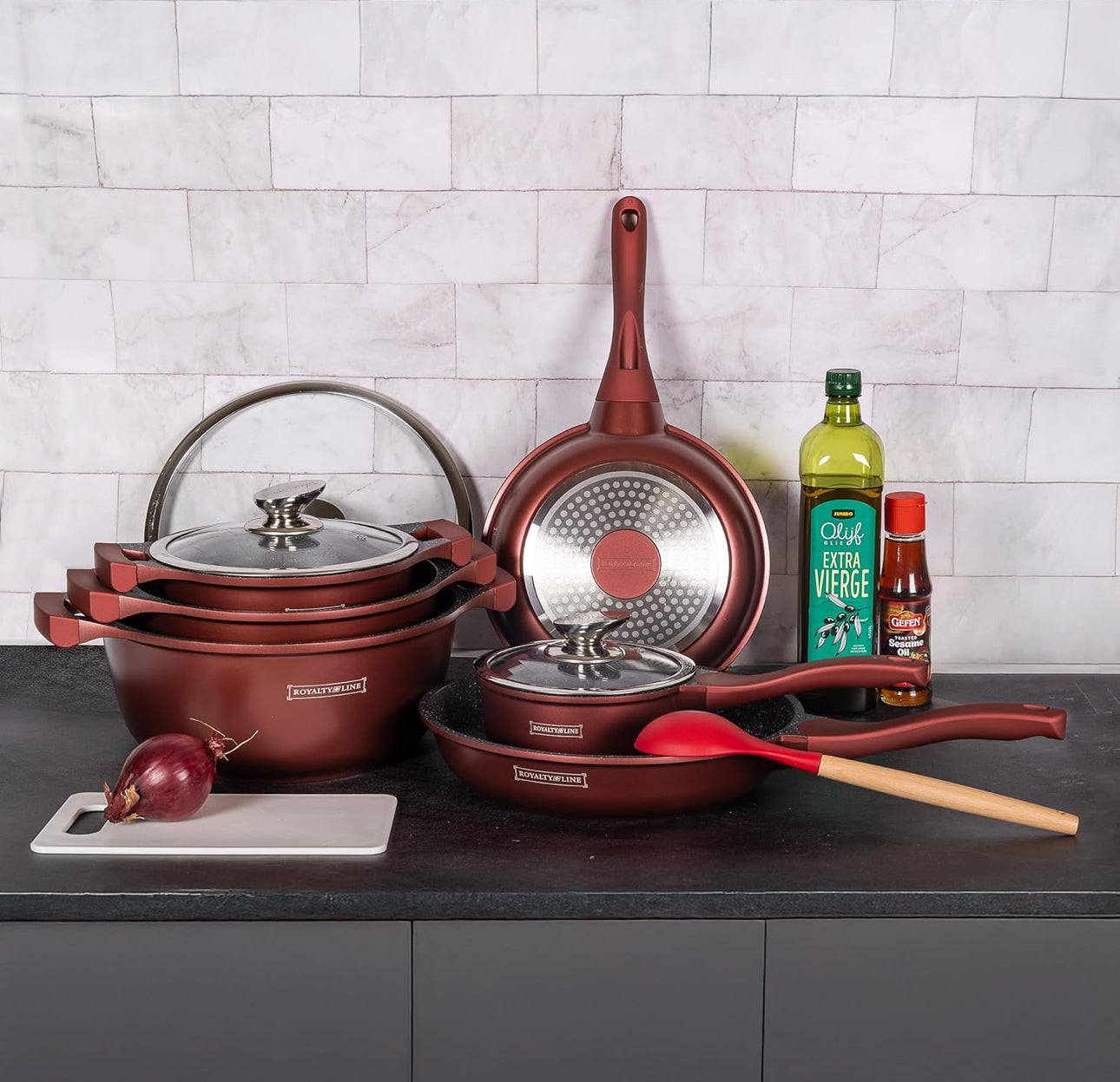 Descoperiți plăcerea de a găti cu setul de vase Burgundy, care combină stilul și funcționalitatea perfect! 🌟👩🍳👨🍳