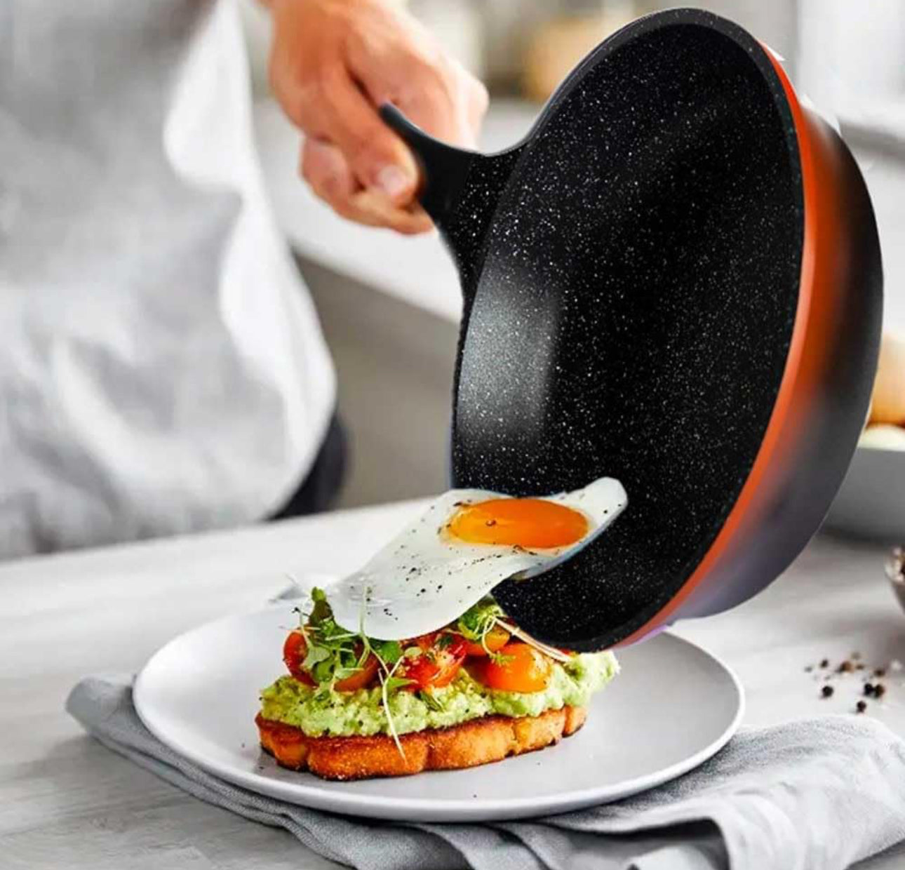 **Caracteristici:** Acoperire din piatră, rezistent, lavabil în mașina de spălat vase, antiaderent, spălare manuală, potrivit pentru toate tipurile de bucătării, ușor de curățat