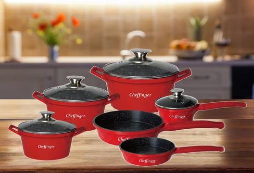 Transformă fiecare sesiune de gătit într-o experiență plăcută cu setul de oale și tigăi Cheffinger, format din 12 piese esențiale pentru orice bucătărie modernă. Fabricat din aluminiu turnat sub presiune și prevăzut cu o acoperire antiaderentă de marmură în 3 straturi, acest set îți oferă durabilitate, eficiență termică și un design elegant tip diamant.